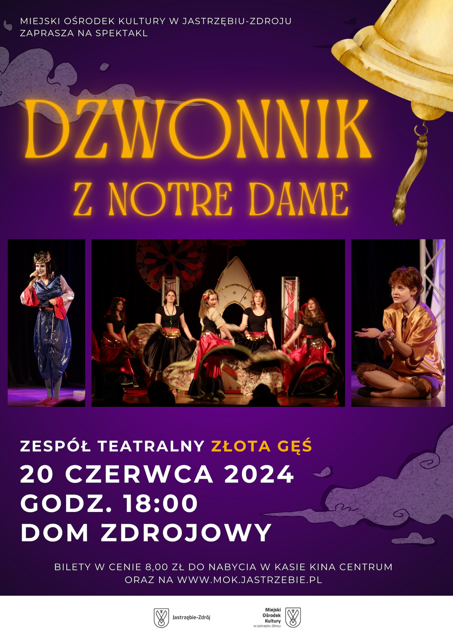 Zapraszamy na spektakl „Dzwonnik z Notre Dame”. Jest to fascynująca opowieść, o kalekim chłopcu, który marzył o przyjaźni i miłości. Jednak jego opiekun – okrutny Frollo- wmawiał mu, że ludzie są źli i nikt go nie zaakceptuje z powodu jego wyglądu. Czy Frollo ma rację? A może to zły przykład despotycznego i niemoralnego władcy, sprawia, że ludziom trudno okazać tolerancję nie tylko wobec kalekiego chłopca, ale też przybyłych do Paryża Romów.